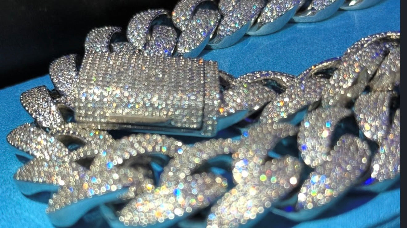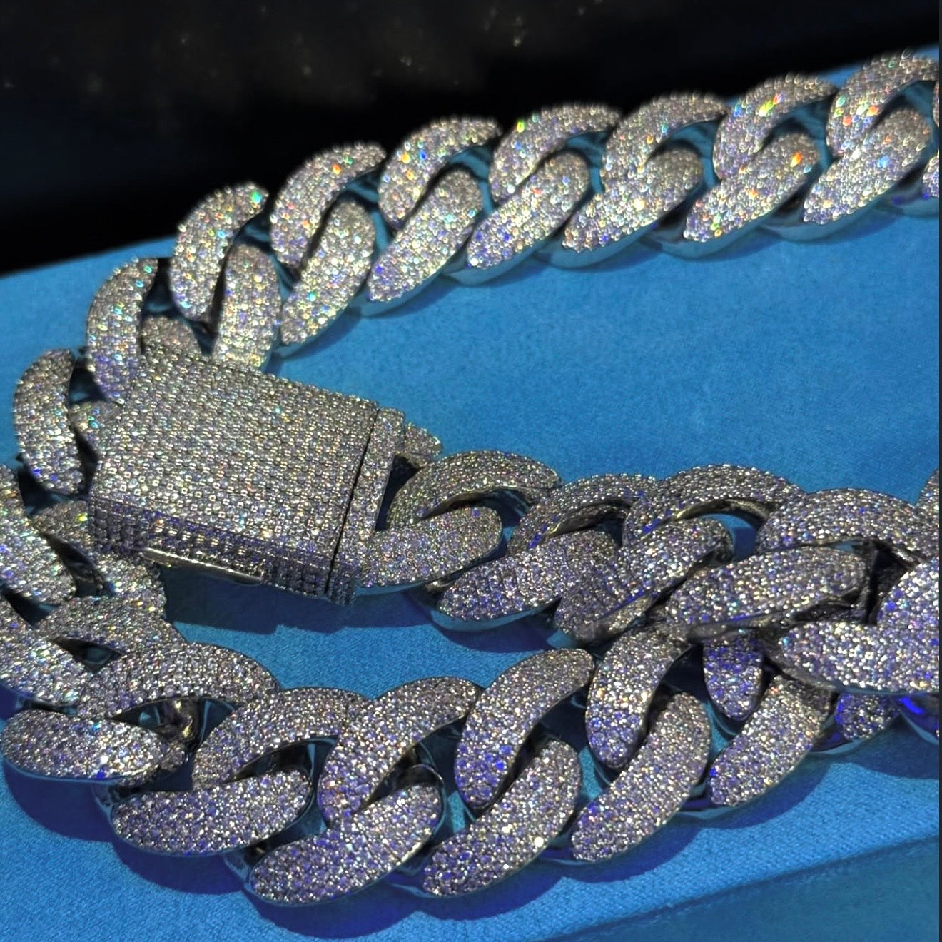 【K18ホワイトゴールド】【天然ダイヤモンド】プロングキューバンリンクネックレス
